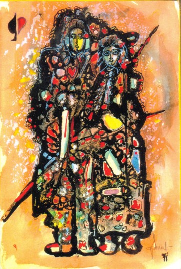 but rather that of turmoil, as revealed by the gravity of line and colour