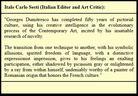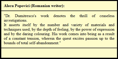 Studying his works and trying to grasp his artistic universe, I always feel that I am missing the essence of that indescribable quality that greets you in the structure of George Dumitrescu's compositions