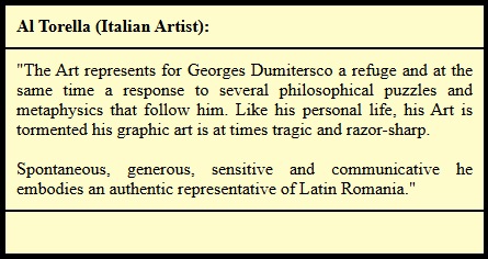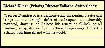 G. Dumitresco has always been a surprising artist; his imaginative power, the evocative crystallization of his nostalgia, that is to say, the calm and restrained sadness that reveals itself in his works, is determined by the need to project his experiences
