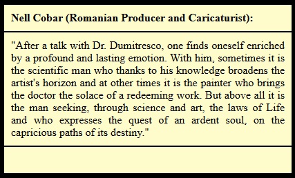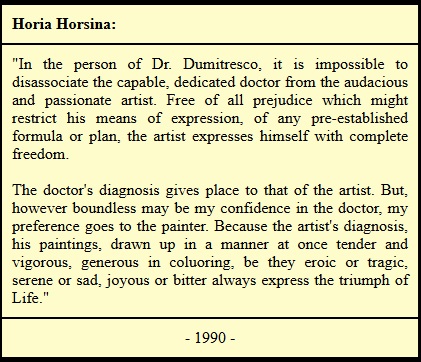 Dr. G. Dumitresco naturally explains the doctor's openness to art through the emotional involvement of the man in white to the anxieties and hopes of the sick, which shape his sensitivity